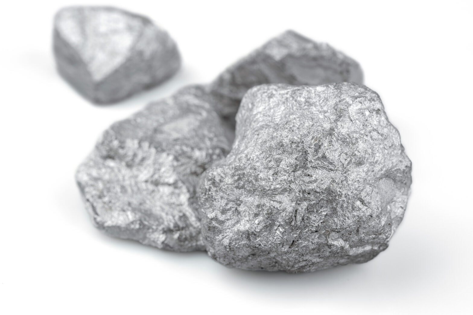 Pure platinum or silver or rare mineral from the mine isolated on white background with clipping path